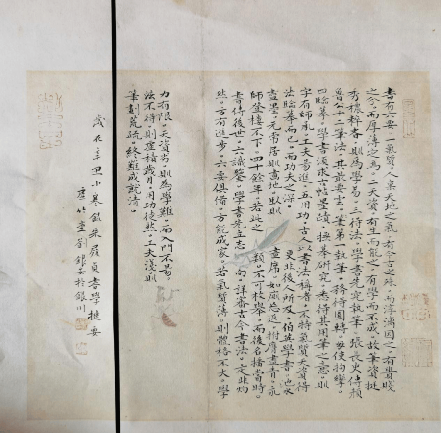 按刘银安的说法,当年,只要有空闲,他就去灵武二小后面萧允中家中看萧老写字,听萧老传授书法之道。与他同时爱好书法的人,只有他不违初衷,坚持了下来。不放弃,就会一直抱着,他一直怀抱着习字练书的志向。