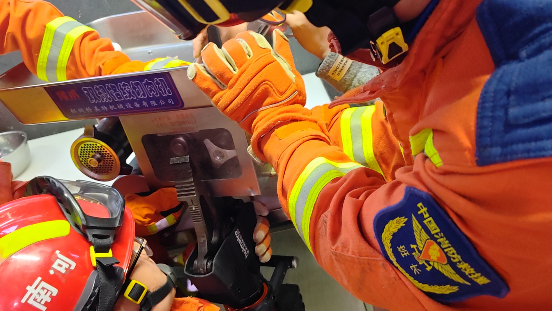 4月8日凌晨3时05分,郑州市消防救援支队119指挥中心接到报警称,桐柏路淇河路某胡辣汤门店内,一女子手卡搅面机。农业西路消防救援站接到指令,立即出动2车10人赶赴现场,现场女子的左手被卷入压面机内,无法取出,消防救援人员经过侦查,决定采用先拆掉搅面机外壳,然后用电动剪扩钳扩张等方法进行救援,经过15分钟的破拆,该女子左手被成功救出,未造成严重伤害。