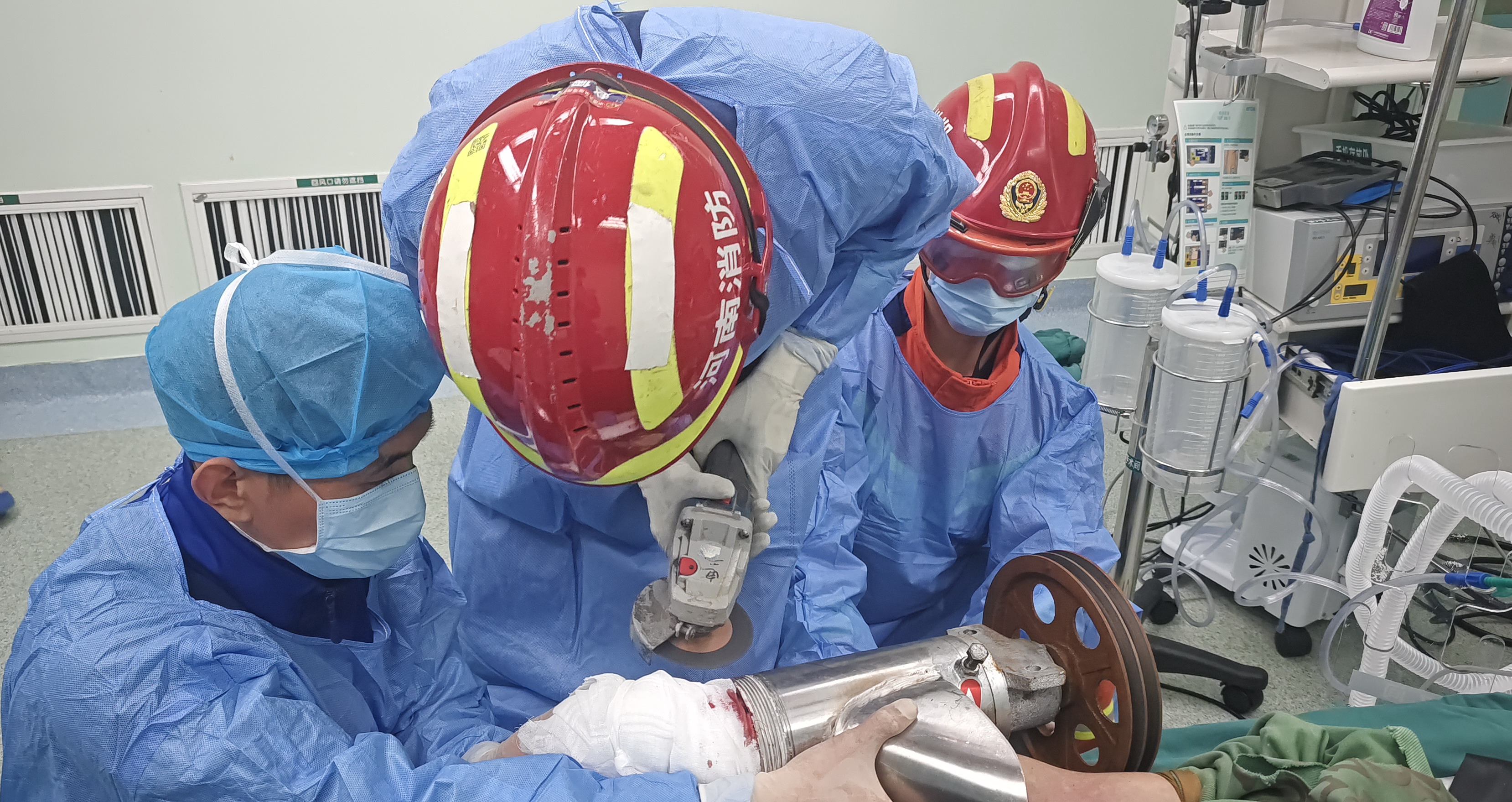 4月1日22时25分,郑州市消防救援支队119指挥中心接到报警,伏牛路省直三院急救中心,一名男孩右手被卷入压面条机,医生也无法取出。陇海西路消防救援站接到指令后,立即出动2车12人赶赴现场。现场一名16岁左右的男孩躺在病床上,右手手臂被钢管完全包裹,需要用电动手锯首先进行切割,再用电动剪扩钳进行破拆。研究确定救援方案后,手术麻醉后开始操作,虽然钢管被切割开,但男孩手部受伤严重,移交医生进行后续治疗。该男孩是在擦洗绞肉机时,电机忽然运转,手瞬间被卷入滚筒中。
