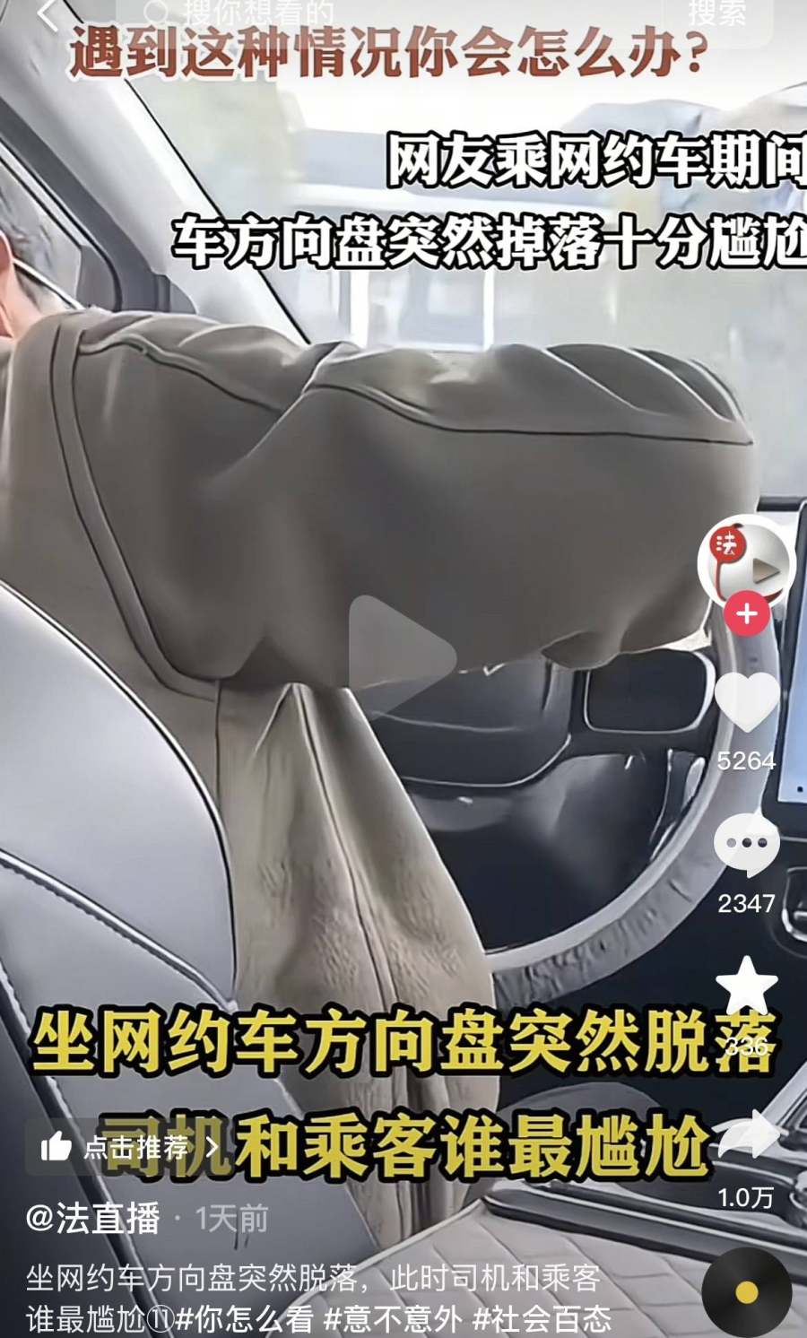 近日,一则关于网约车的新闻在网络上引发了广泛关注。据报道,江苏一名女子在乘坐网约车的过程中,遭遇了一件令人惊恐的事情——车辆的方向盘在行驶途中突然掉落。这一离奇事件迅速在网络上引发了热议,许多网友纷纷发表了自己的看法和调侃。