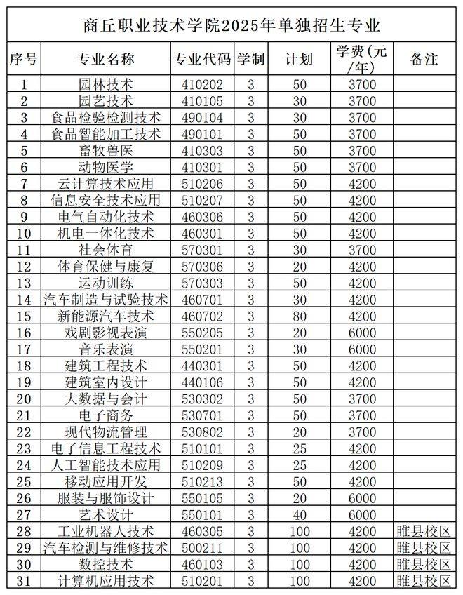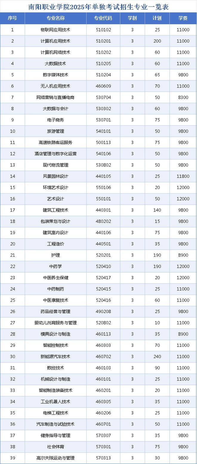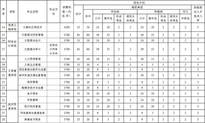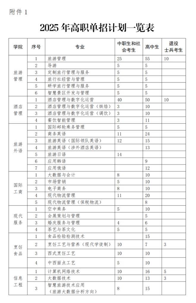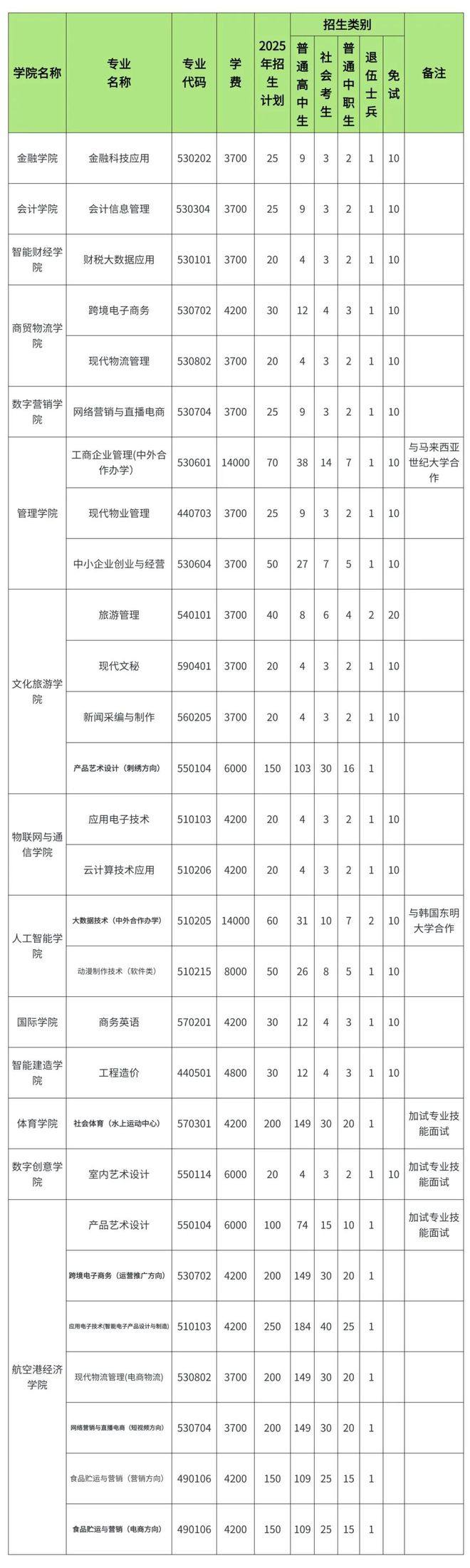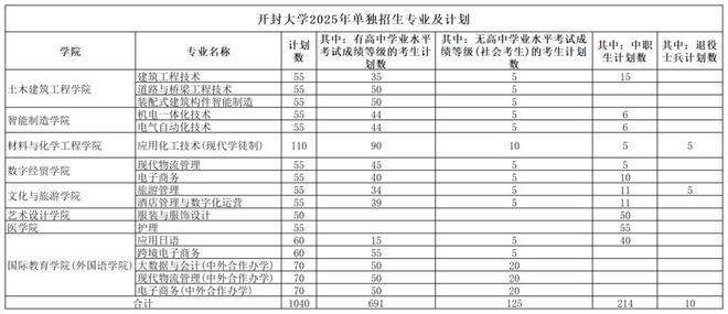 学校2025年单独考试招生计划为700人。其中普通类(含普通高中类、中职类、社会考生)招生计划650人,退役士兵单列计划50人。依据报考情况,学校可进行适当调整专业招生计划。