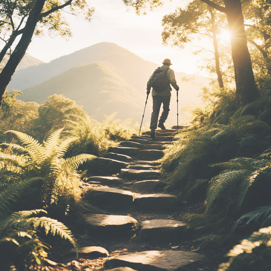 登山者踏上这条古道,手中的登山杖有节奏地叩击着石阶,笃笃的声响悠悠回荡在幽静的山林间,恰似古老的节拍,轻声诉说着岁月的故事。每一步落下,都如同与大地进行一次亲密的交谈,真切地感受着山脉沉稳有力的心跳。