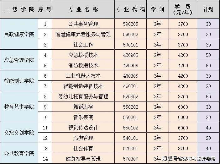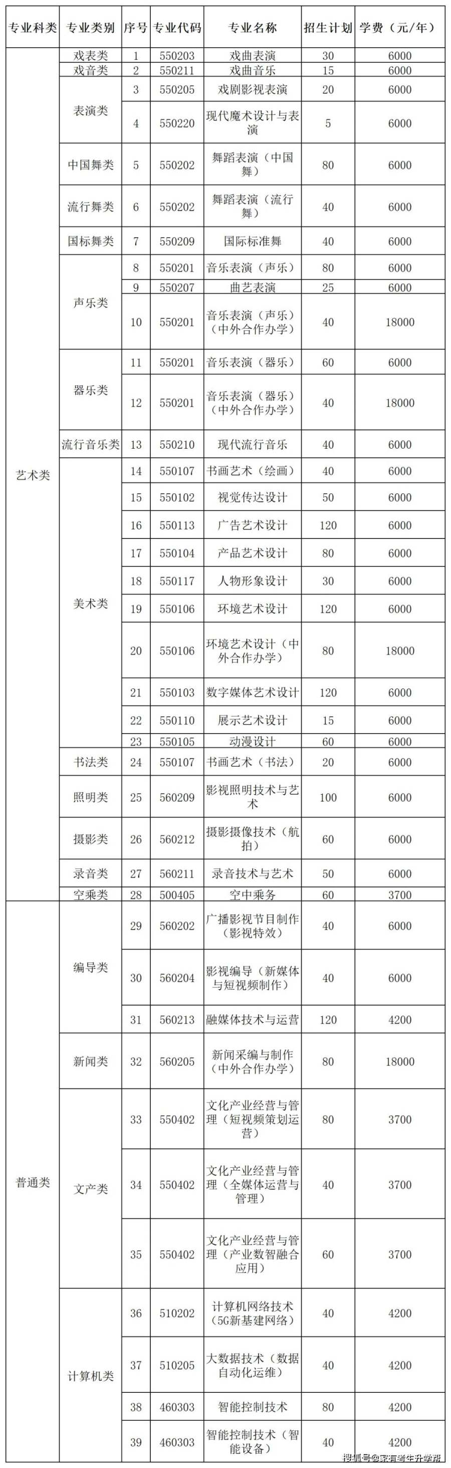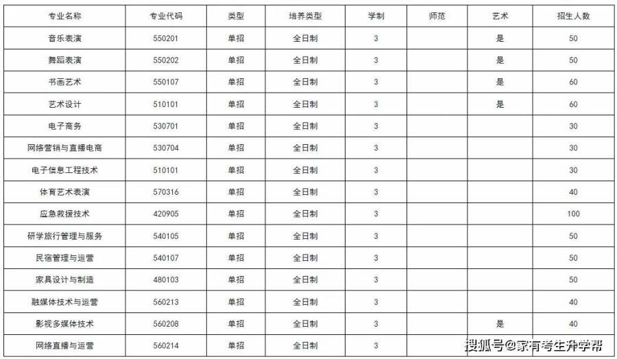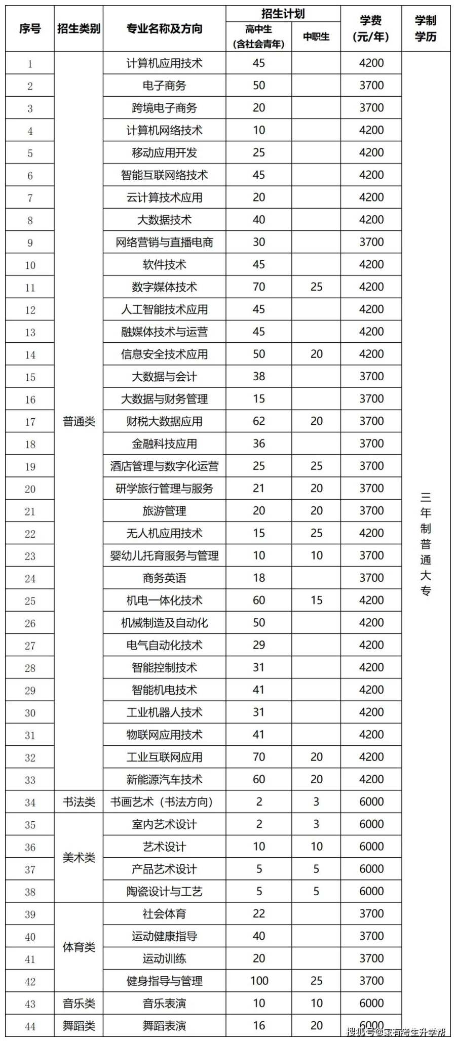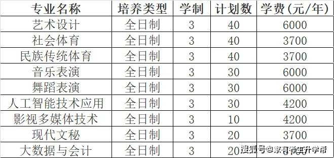 学校2025年高职单招计划100人:舞蹈表演专业计划60人、社会体育专业计划40人。