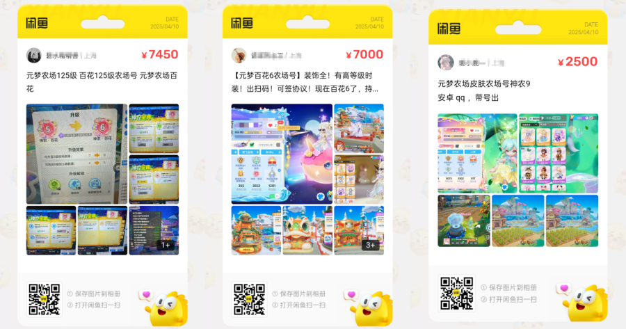 就这样,元梦之星形成了一套独特的“游戏内生产-跨平台交易”体系——在农作物成熟后,“花农们”便会辗转闲鱼、小红书等多个平台兜售。