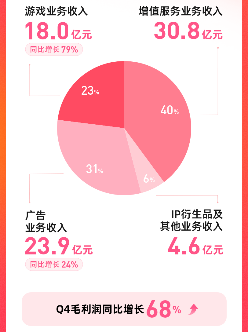 而与Z世代、二次元毫不相干的《三国:谋定天下》,成了B站游戏的“救命稻草”。B站游戏业务2024年Q4收入18亿元,同比增长79%,带动毛利润同比大幅增长68%,B站也重新被各大证券机构评估、审视。