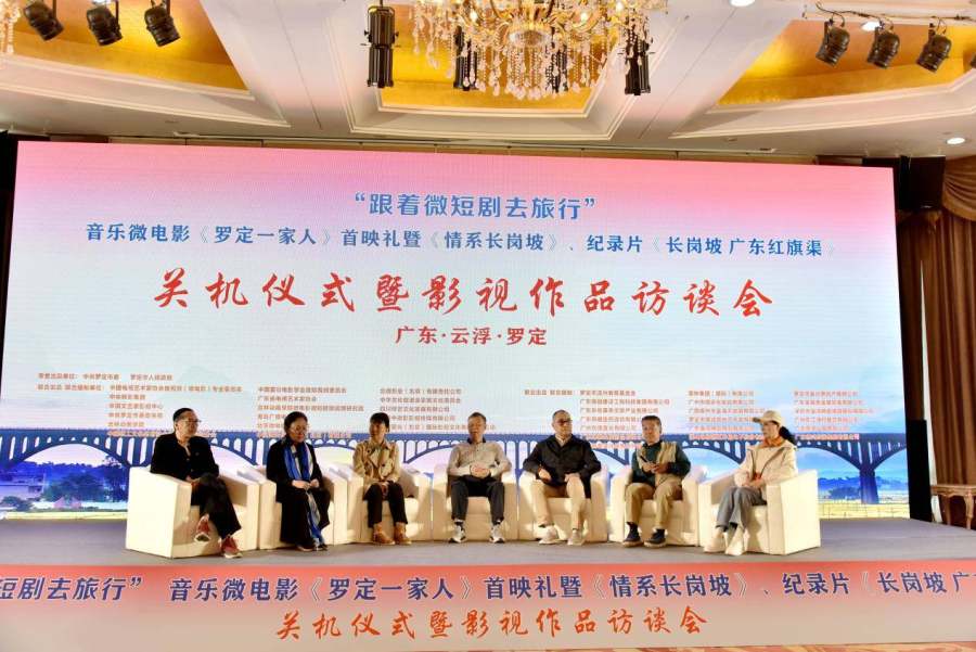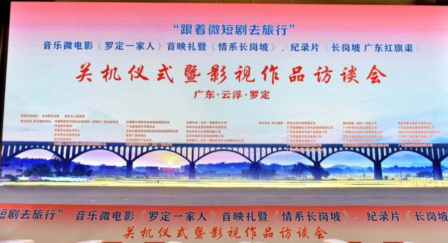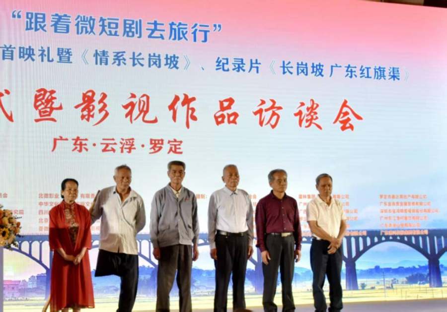 “情系泷州一团火,爱在罗定爱天河”,近日,在广东省云浮市罗定市举行的“跟着微短剧去旅行”之音乐微电影《罗定一家人》首映礼、微短剧《情系长岗坡》、广播剧《罗定的故事》、纪录片《长岗坡 广东红旗渠》关机仪式暨影视作品访谈会上发生了感人至深的一幕故事:当年参加长岗坡渡槽的建设者张松彬、梁坤元、何荣南、肖碧梅和牺牲民工家庭代表陈荣开、陈雄开在全场热烈的掌声中走上舞台,接受主办单位领导和全体演职人员的崇高礼赞。会场上,人们对促进罗定经济发展和精神文明建设作出重要贡献的建设者、贡献者和奉献者的尊崇之情汇聚到了一阵阵的掌声中,台上台下相互交流,演职员和群众互致感谢的气氛达到了高潮,祝福祖国,礼赞时代,向人民致敬的声音始终回响在活动现场的领导致辞讲话与演职员的发言互动及各个环节中。