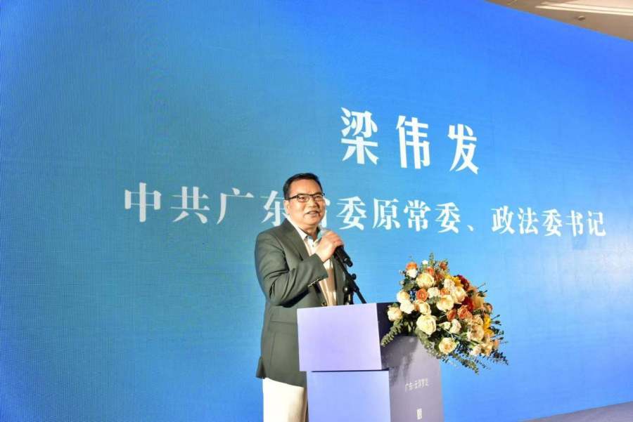 (上图为中共广东省委原常委、政法委书记梁伟发讲话)