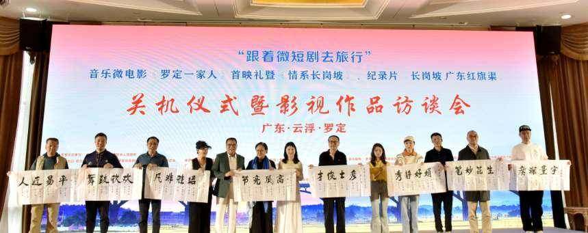 在关机仪式活动现场,罗定市领导为文化顾问、文化发展咨询专家和旅游形象大使颁发证书。摄制组负责人和艺术家为合作单位、支持单位颁发了拍摄基地铜牌并赠送了锦旗,表示感谢。