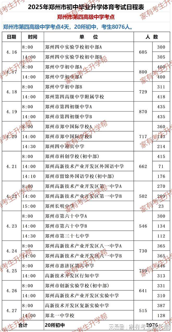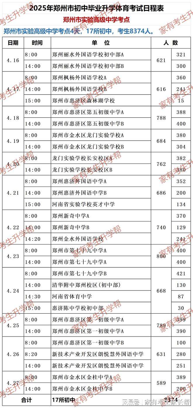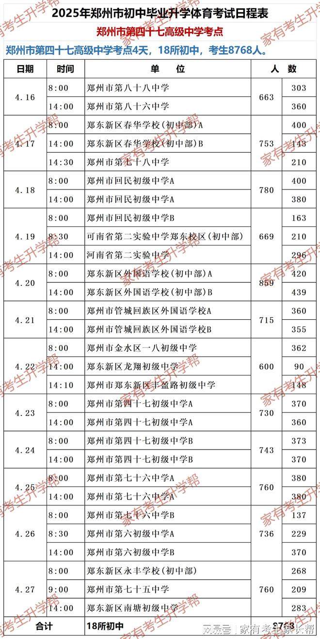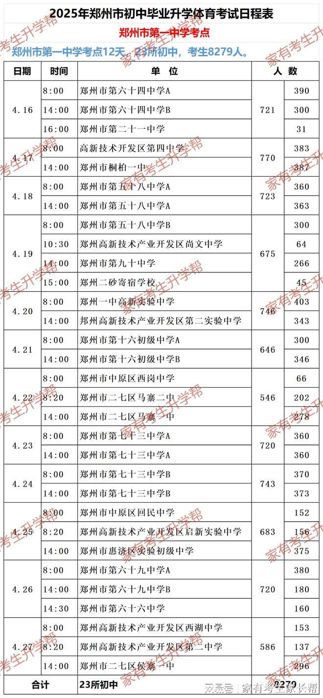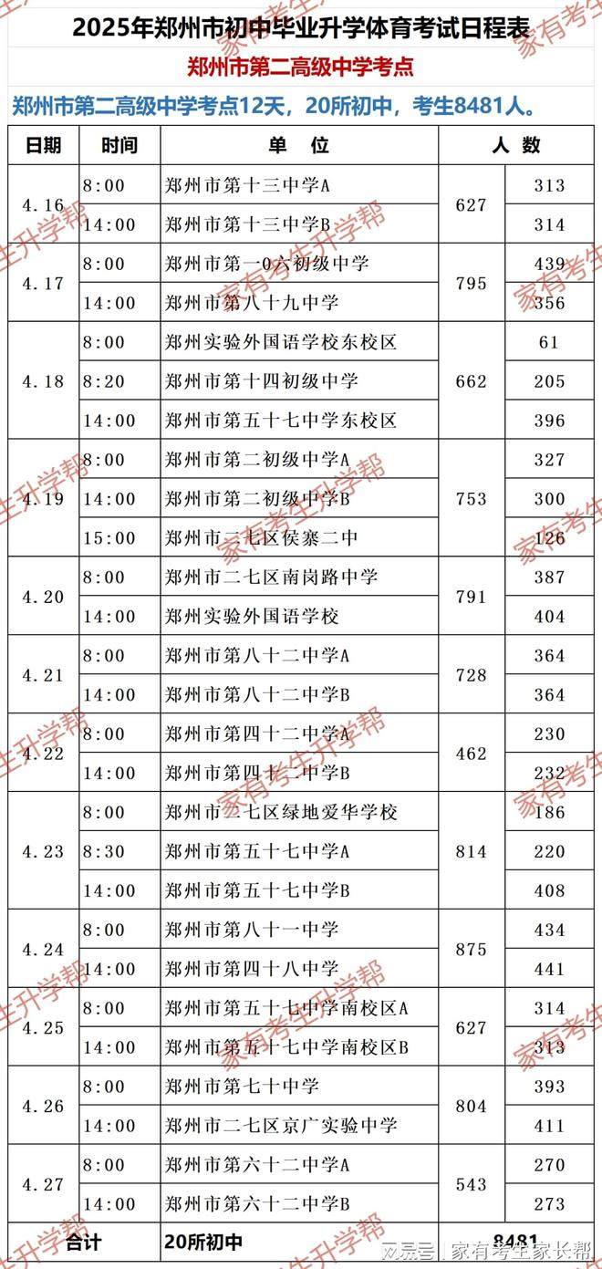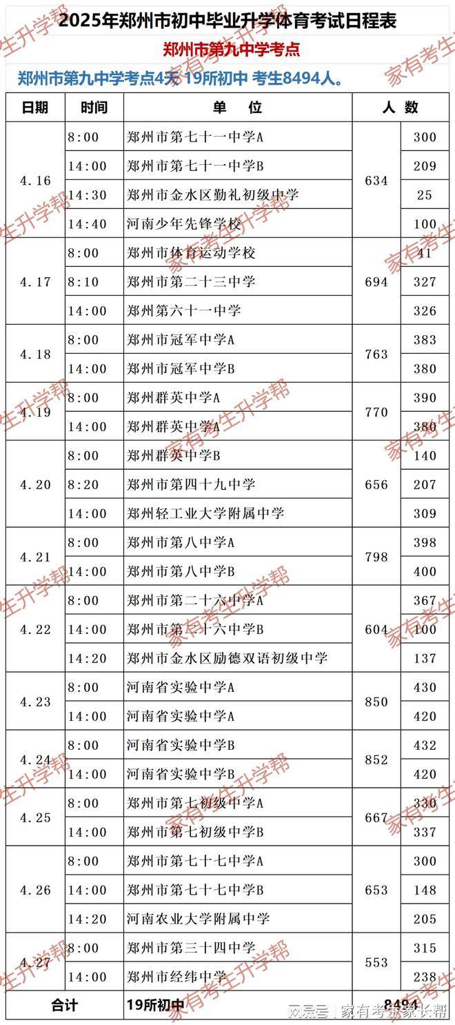 今年,郑州市中招体育考试在2025年5月30日之前进行完毕,郑州市内十区中招体育考试时间从2025年4月16日开始。