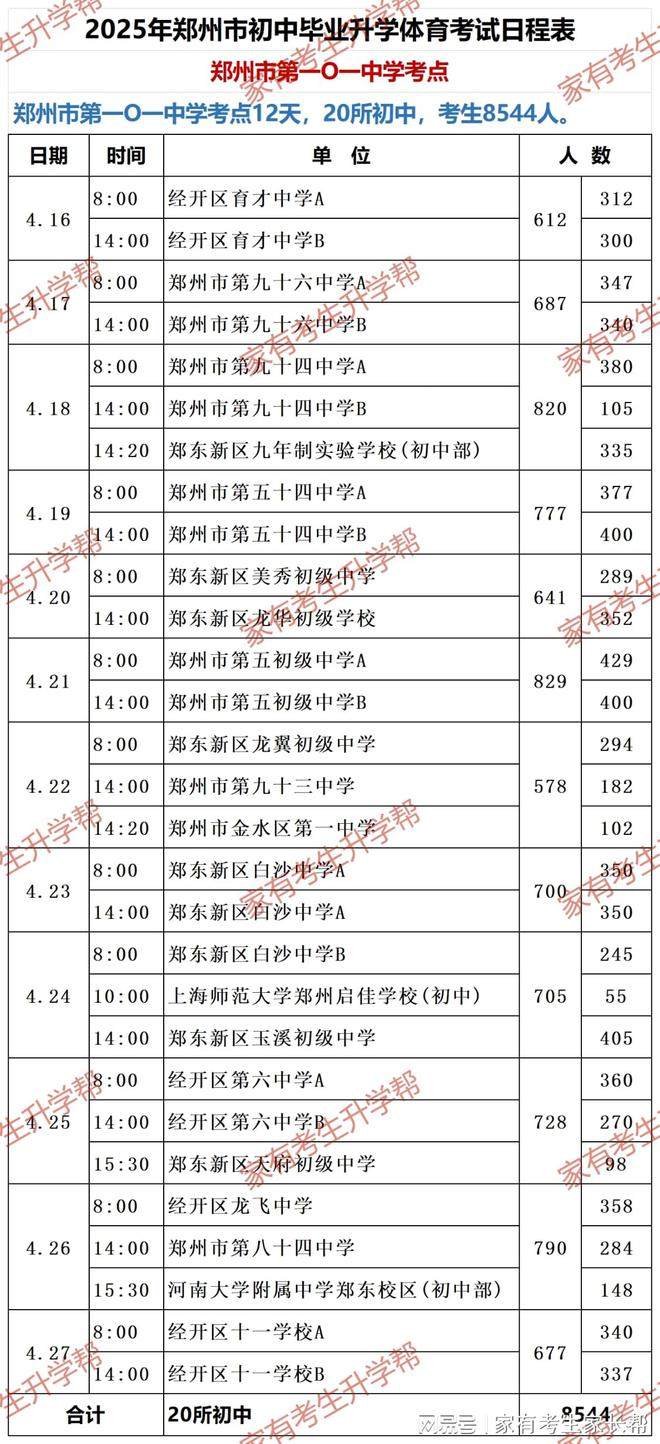 4月16日起,2025年郑州十区中招体育考试正式开幕,4月16日-4月27日期间,8万多名考生将在十个考点分批完成考试。