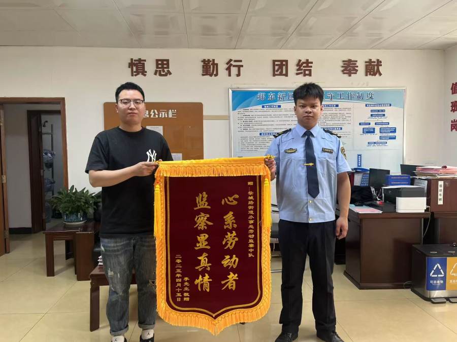 祭城路街道办事处劳动监察中队:薪暖农民工 获赠锦旗赞誉