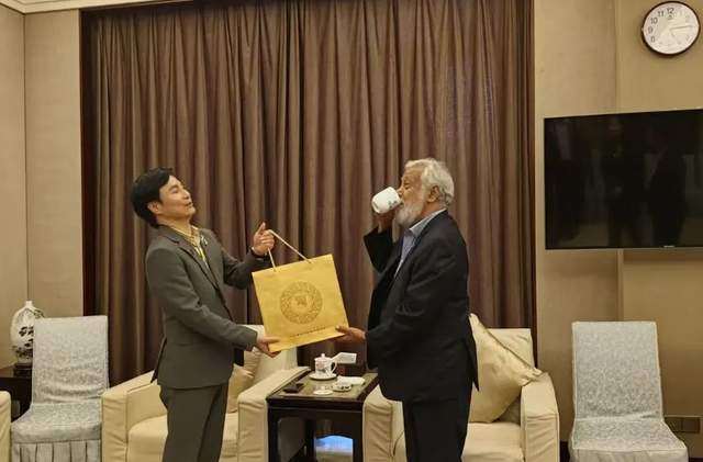 △郭崧向夏纳纳赠送茶叶