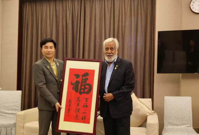 而这幅以“百福千祥,万事顺意”为题的“福”字书法,不仅寄托着中国人民对夏纳纳总理及其家人“福气满满、健康平安”的美好祈愿,更象征对东帝汶国家繁荣、人民幸福的诚挚祝福。总理感慨道:“‘福’是两国共同的追求,这份礼物让我们看到合作中的文化共鸣。”