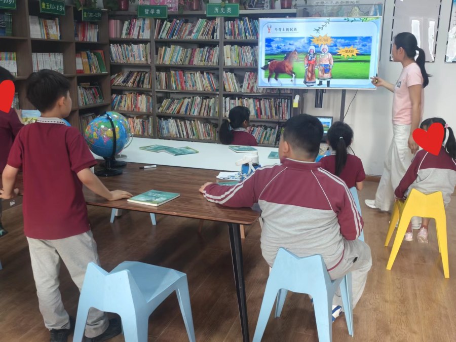 活动伊始,社工邀请志愿者老师以图文并茂的PPT形式,向孩子们展示了蒙古族的特色民居——蒙古包。通过“为什么蒙古包是流动的家?”“蒙古包的结构有什么奥秘?”等趣味问题,孩子们跟随志愿者的讲解,一步步了解蒙古包的历史渊源、建筑智慧及其背后蕴含的游牧民族文化。生动的图片、互动问答和短视频让孩子们仿佛置身于辽阔的草原,感受到中华民族多元文化的魅力。现场气氛活跃,孩子们踊跃发言,分享自己对不同民族居住文化的理解。民族文化课堂结束后,社工和志愿者为孩子们提供了“一对一”作业辅导服务。针对作业中的疑难问题,耐心引导孩子们自主思考。