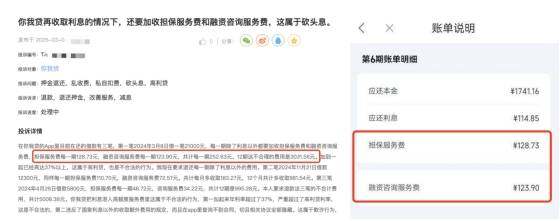 在黑猫投诉上,近期一位消费者投诉称,在你我贷上贷款21000元,除被收取利息外,每期需支付担保服务和融资咨询服务费合计262.63元,推高了综合贷款利率水平。消费者要求退还除利息以外的费用。