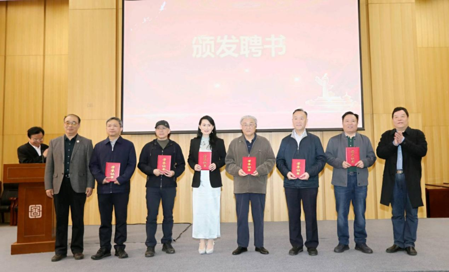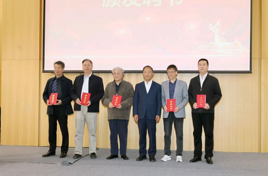 周文彰为侯欣一、高贵军、沈厚铎、张明新、赵庆林颁发顾问聘书。