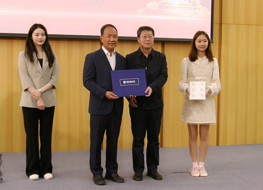 周文彰向国家图书馆捐赠了《会长的使命》《会长可以这样做》《人间要好诗》《诗韵校园》等八本图书,赵晓耕捐赠了《中国古典法治的表达》,国家图书馆张军副馆长接受捐赠。