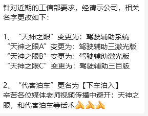社交媒体热传的一个截图显示,比亚迪已经要求相关合作媒体调整对于智驾、天神之眼等相关表述,突出“辅助驾驶”。