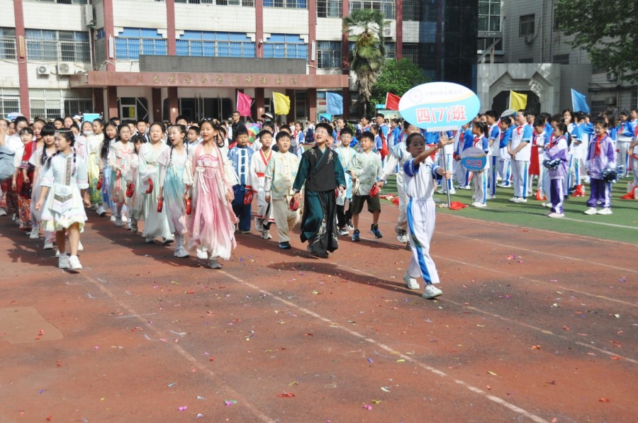 开幕式上,伴随着慷慨激昂的《运动员进行曲》,40个班级方阵整齐划一、口号响亮,以队列队形、民族服装秀、传统文化展演、特色大比拼、模仿秀等多种形式,展现了当代小学生的风采与活力。精彩的表演给同学们带来了强烈的视觉冲击,将运动会开幕式推入高潮。