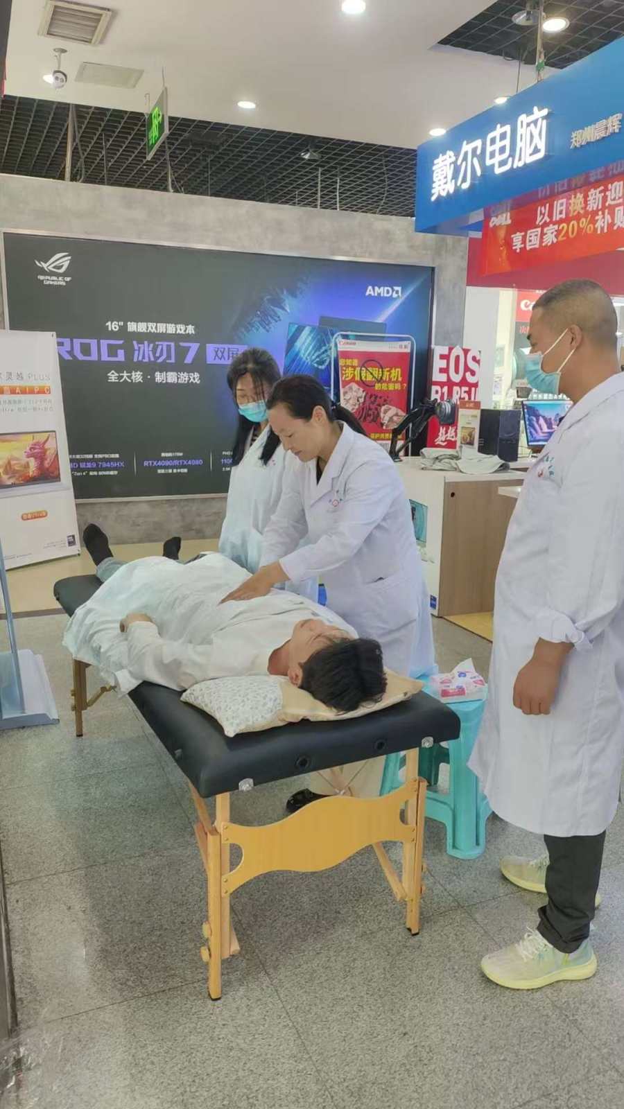 在义诊现场,来自河南康复中心医院、在针灸正骨推拿等领域非常擅长的张宁主任、张华军、陈英及他们的医疗团队,精准地把握着一根根银针,唤醒人们身体自身的修复机制,轻挑慢捻,病痛在这时而酸沉时而麻沉的微妙刺激下,渐渐缓解,如同沉重的阴霾被阳光驱散。还有在肌肉和骨骼之间游走的推拿正骨,或轻或重,或缓或急,每一次的按压揉捏都仿佛有无穷魔力,紧张的肌肉在他们的手下逐渐放松,错位的骨骼回复到正轨,堵塞的经络恢复畅通,身体的不适也随之烟消云散。此外还有传统中医内科李宁、王泽兴大夫的辩证论治,王果大夫的揉腹等优秀传统治疗手段,都在义诊现场“英雄有了用武之地”。义诊得到园区企业商户员工和顾客的热切响应和一致好评。