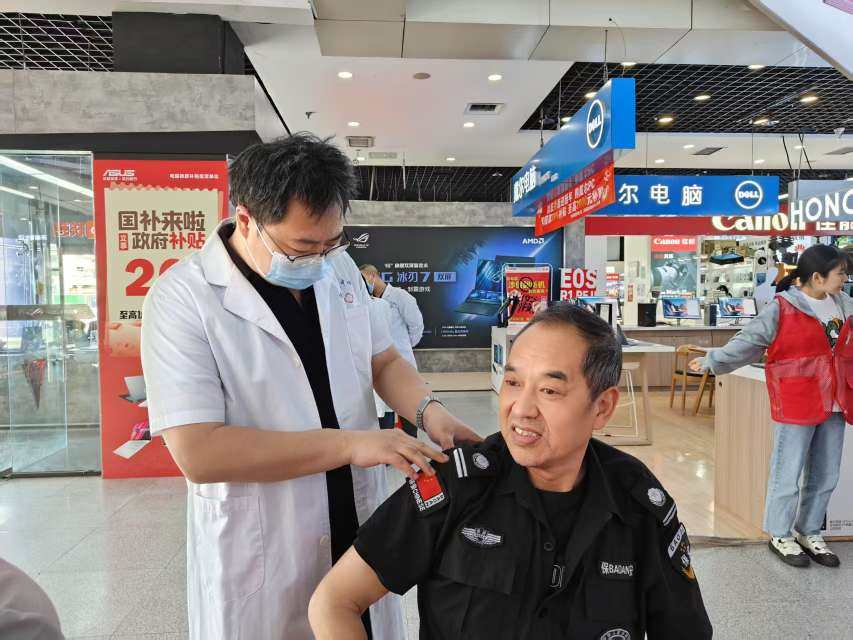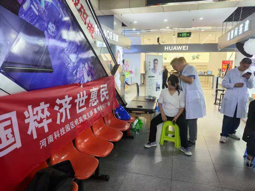 “麻烦大夫给我看看我这一到阴天就肩膀疼啥情况吧……”2025年4月24日上午,在河南科技园区赛博数码港一楼大厅,人头攒动,熙熙攘攘,由河南科技园区机关党支部联合河南康复中心医院、赛博数码广场、河南省数字经济产业协会党委组织开展了一场不同凡响的针灸正骨推拿义诊志愿服务活动,现场6位医术精湛的中医大夫参与了本次义诊活动,服务企业商户员工和顾客百余人。
