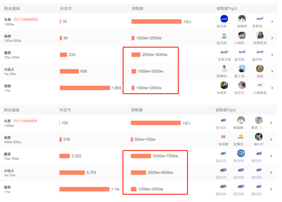 不过,如果和活力28这样的友商相比,蓝月亮当前的微小达人销售额占比还是太低,而且目前也仍在依靠外部网红而非自有账号进行销售。