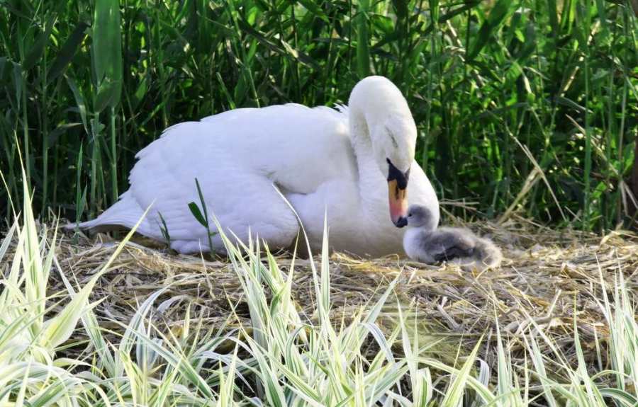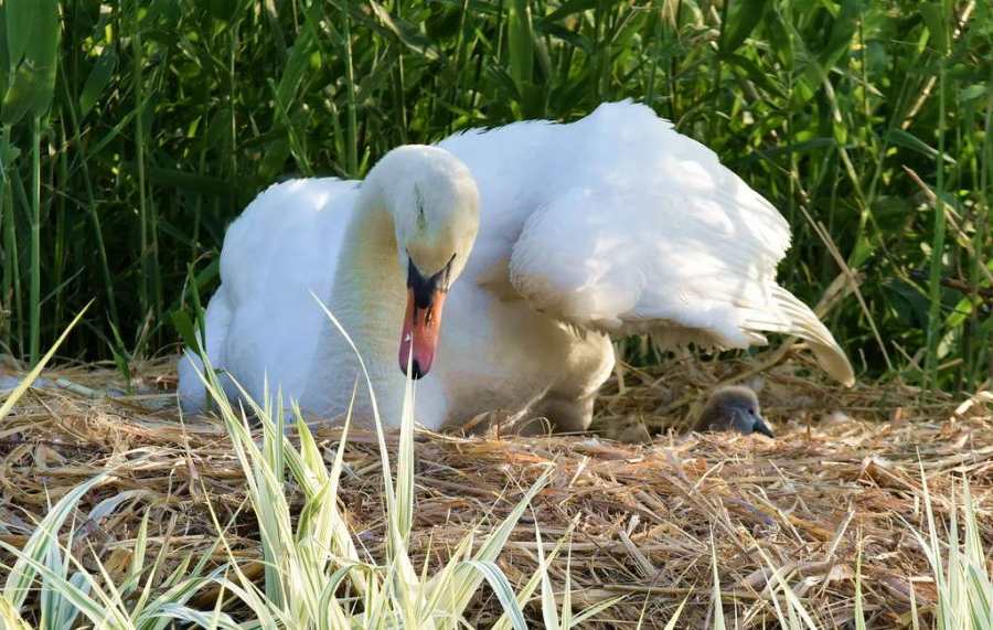 郑州北龙湖湿地公园疣鼻天鹅家族再传喜讯
