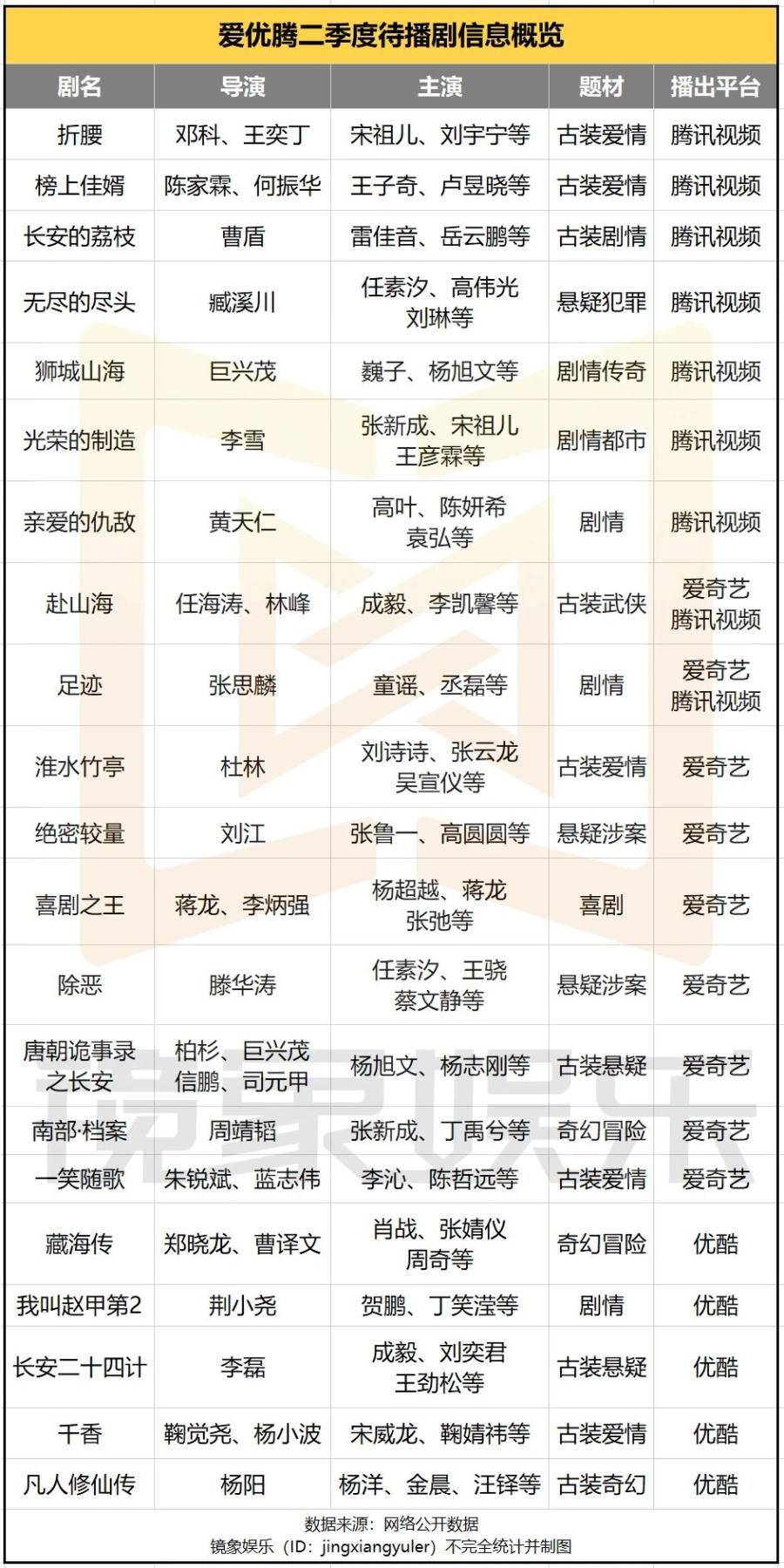 而在今年,强阵容的剧集也开始在二季度高密度地走向市场。不足一个月的时间内,孙俪主演的两部剧《乌云之上》《蛮好的人生》就分别在爱奇艺和优酷上线,产出过《仙剑奇侠传3》《三生三世十里桃花》等多部爆款的林玉芬导演,也带着新作《无忧渡》加入战局,王宝强的《棋士》、姚晨与贾静雯合作的双女主剧《以美之名》等,也让当下的剧集市场更加热闹。