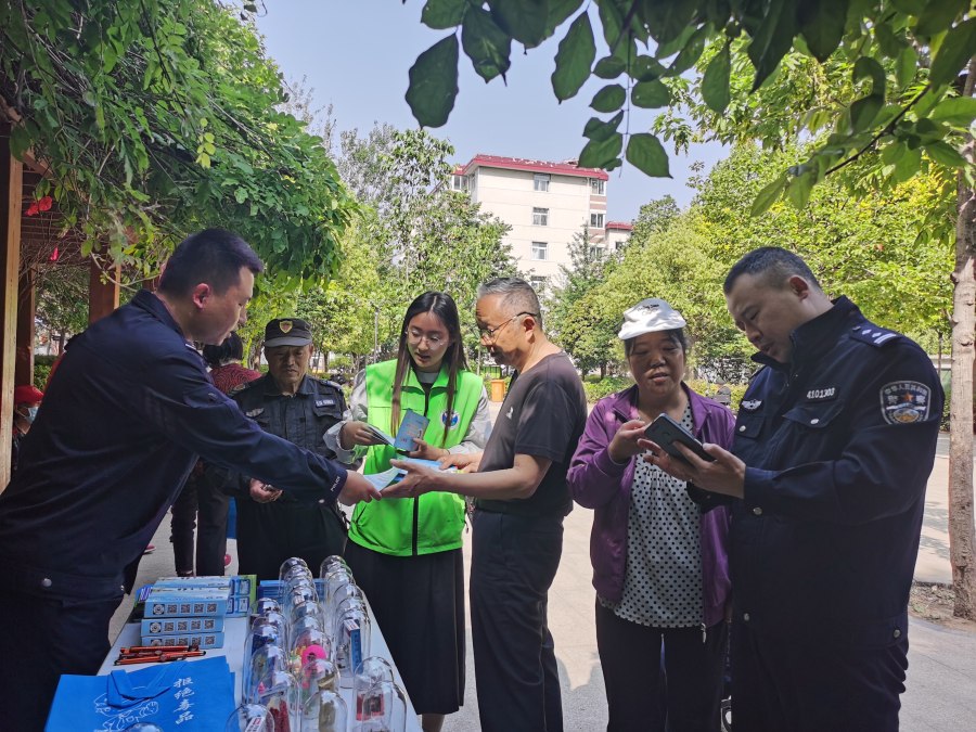 为筑牢全民禁毒防线,提高识毒、防毒意识,4月25日,郑州市公安局禁毒支队、金水分局禁毒大队联合白庙强戒所组织文化路街道办事处玖久禁毒社工及志愿者创新形式,下沉一线,共同走进农大家属院,开展以“无毒社区,幸福港湾”为主题的禁毒宣传活动,为阳光明媚的社区注入平安正能量。