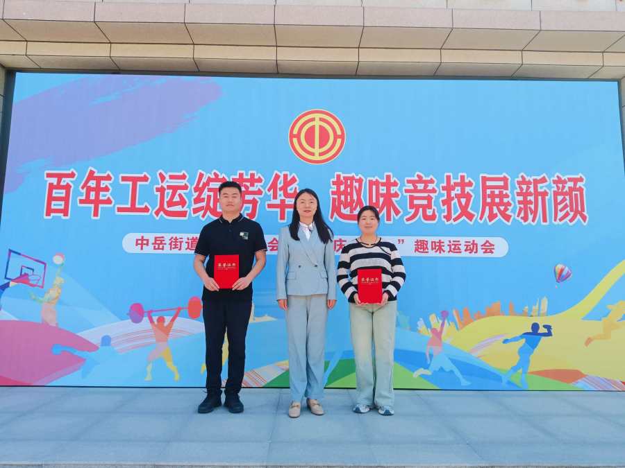 经过激烈角逐,9组优秀选手分获各项目奖项。颁奖仪式上,街道班子成员为获奖者颁发荣誉证书,向获奖选手表示祝贺。春日的阳光洒满赛场,职工们的笑脸熠熠生辉。这场充满汗水与欢笑的趣味运动会,不仅展现了中岳街道劳动者昂扬向上的精神风貌,更以工会百年为纽带,串联起不同年龄、不同岗位职工的心。