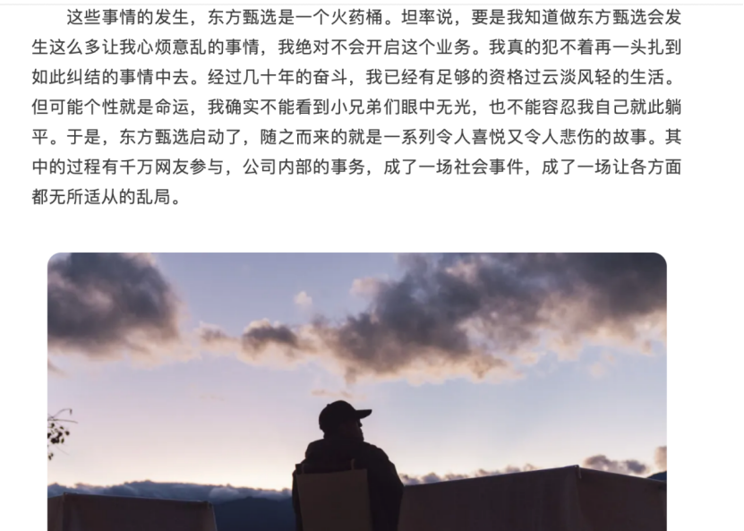 而俞敏洪却表现出不同的心态,他后悔创办东方甄选。