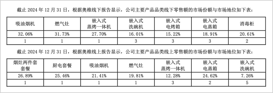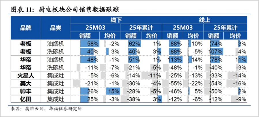 油烟机线下销售额占比32.06%,同比提升1.09个百分点,线上21.41%,提升3.46个百分点;燃气灶线下销售额占比31.73%,前进1.71个百分点,线上19.81%,上升7.37个百分点;