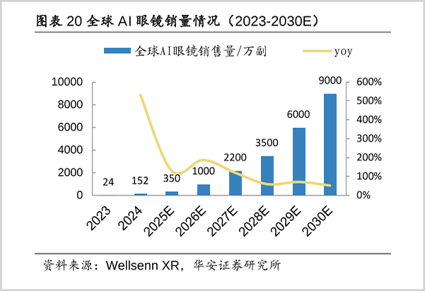 未来,公司还将探索AI烹饪眼镜,通过全息投影呈现分子级烹饪数据,让烹饪更加智能。根据WellsennXR预测,2023-2030年全球AI眼镜销量将由24万副增至9000万副,7年CAGR高达133%。