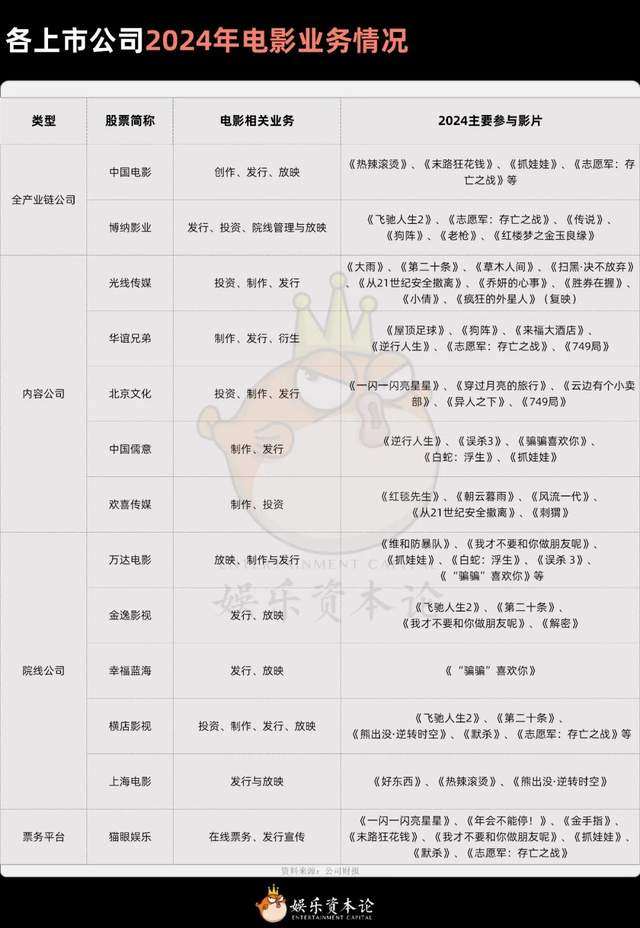 然而,随着整体市场遇冷,多数院线公司都想执行的全产业链战略正在受阻。除了握有上影集团资源的上海电影,多数想要从下游产业链进入上游的公司并不是总能有机会参与头部商业片,只能被动承担腰部影片的不确定性。2024年,春节档的《飞驰人生2》、《第二十条》给了众多公司参与的机会;但在2025年至今一片独大的格局下,下游公司的全产业链战略前景愈发模糊。