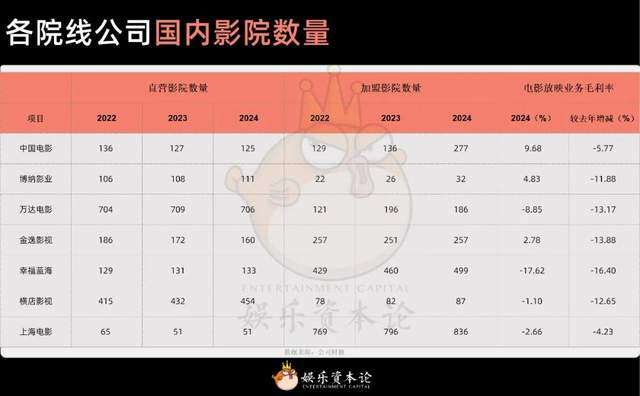 实际上,去年,在上市公司中只有横店影视和博纳影业还在坚持扩张其直营影院数量,就连万达电影都出现了直营影院和加盟影院的一齐缩减。