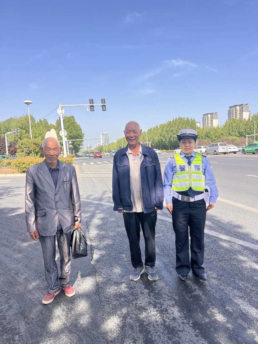 5月1日9时30分,中牟交警民辅警孙延丽、朱歌谣在郑开大道与广惠街交叉口执勤时,有两名70来岁的老爷爷向她们询问去开封怎么坐车?