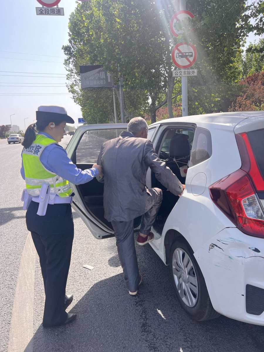 由于两人正在执勤,但还需帮助老人家解决燃眉之急,朱歌谣在向指挥中心报备后,就让同事孙延丽驾驶私家车把他们送往去开封最近的公交站牌处,并看着两位老人家安全坐上公交车。