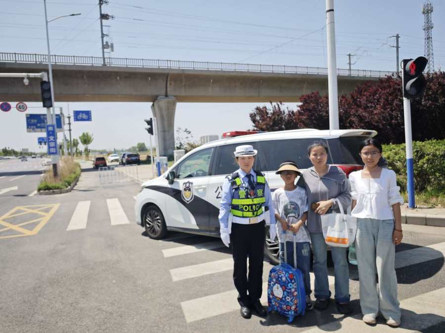 5月1日11时左右,中牟交警周磊、朱亚伟等人在牟山湿地公园执勤时,有群众向他们求助称:她们娘仨从郑州乘坐地铁来建业电影小镇玩,咋乘坐网约车稀里糊涂的跑错了地方。