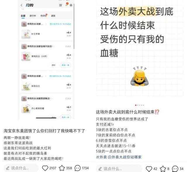 “这场外卖大战到底什么时候结束,受伤的只有我的血糖。”