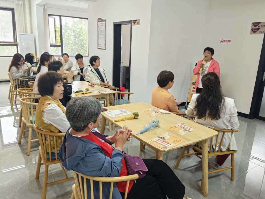 最后,居民王阿姨、李阿姨主动提议:“想给大家唱《母亲》和《穆桂英挂帅》,用咱传统戏曲给妈妈们送上祝福!”随即,她以清亮高亢的唱腔演绎经典选段,将穆桂英的飒爽英姿与佘太君的慈爱坚韧娓娓道来。虽无戏服道具,却凭借真挚的情感赢得阵阵掌声。