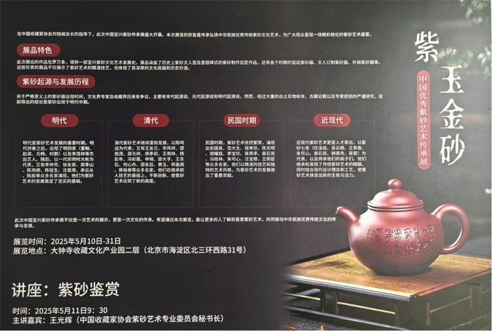 2025年5月10日上午,由中国收藏家协会主办、刘铭威会长担任学术指导的“紫玉金砂——中国优秀紫砂艺术传承展”在北京大钟寺收藏价值品商城正式启幕。
