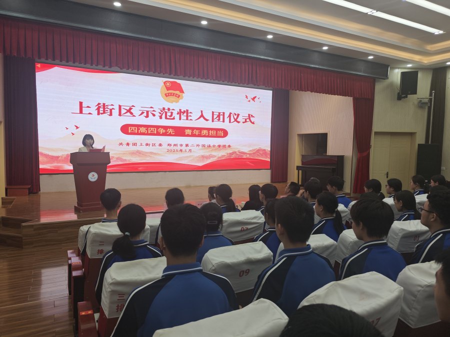近日,共青团上街区委在郑州市第二外国语中学举办“四高四争先 青年勇担当”上街区2025年示范性入团仪式。
