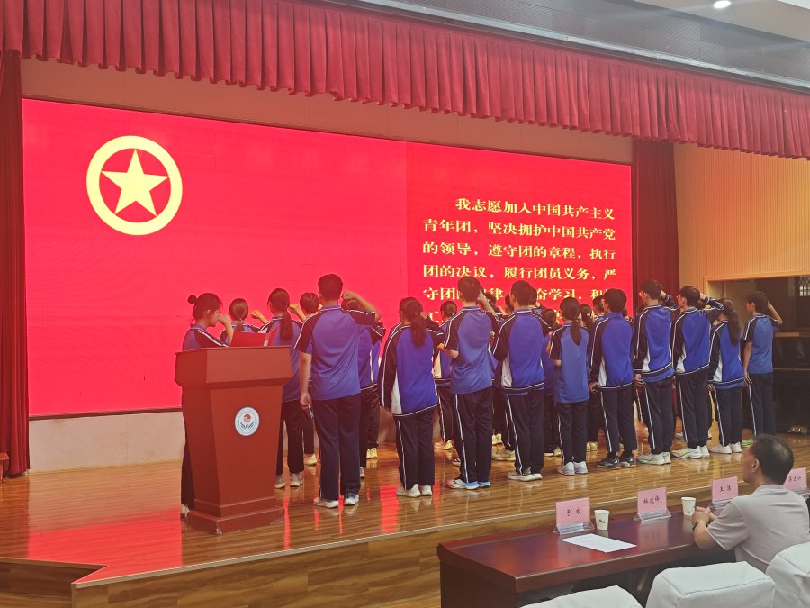 入团仪式在庄严的国歌声中拉开帷幕,30余名新团员在党团组织负责人和教师代表的见证下加入中国共产主义青年团并进行入团宣誓,坚定的誓言声在团旗下铿锵回荡。
