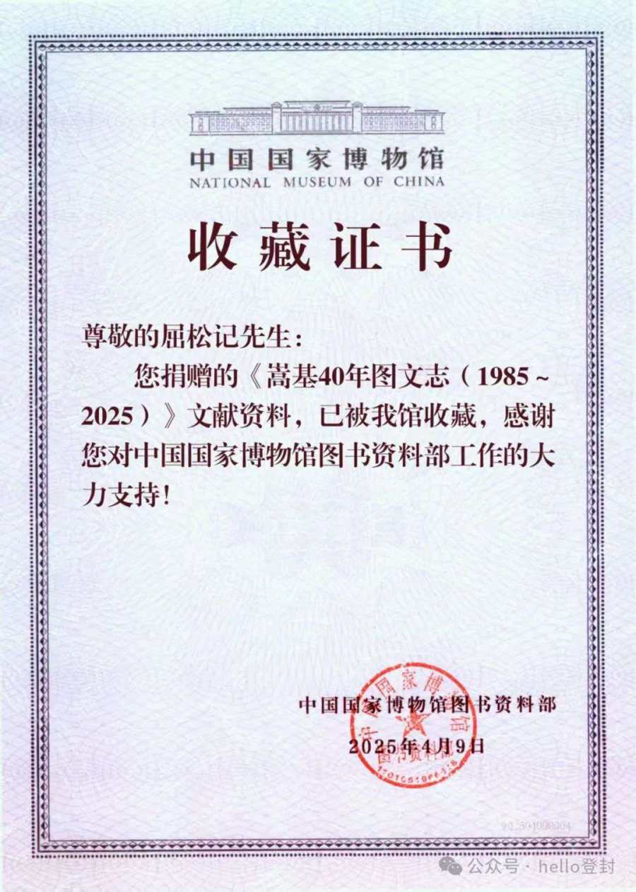 日前,登封一部反映当下民营企业40年坎坷发展的志书《嵩基40年图文志(1985-2025)》,日前被中国国家博物馆荣耀收藏。此举标志着登封民营企业---嵩基集团作为河南一家优秀的民营企业,其取得的成就和为国家经济社会发展作出的贡献得到了政府和社会的充分肯定。