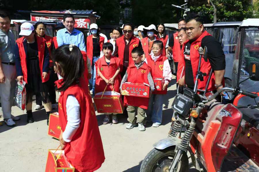 在全国助残日来临之际,5月11日是一年一度“母亲节”,“爱心妈妈”们不过节日忙助残,带着自己孩子参加鹿邑县助残志愿服务队组织的第三期“善行鹿邑”关爱残疾人活动。在队长李文金带领下,30多位身穿红色马甲的志愿者及“小志愿者”一起走进鹿邑县西关万人村小区一楼43号困难残疾人家庭胡克点家中慰问。