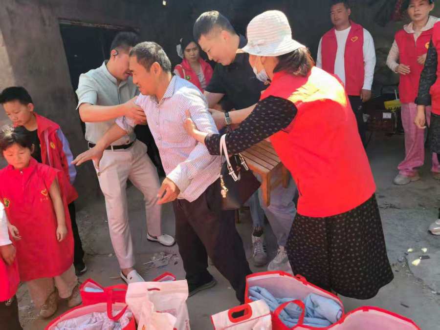 鹿邑县助残志愿服务队的到来,为这个特殊的家庭带来了米、面、食用油、夏凉被等等生活物资与帮扶资金,送去了社会各界的牵挂与温暖。