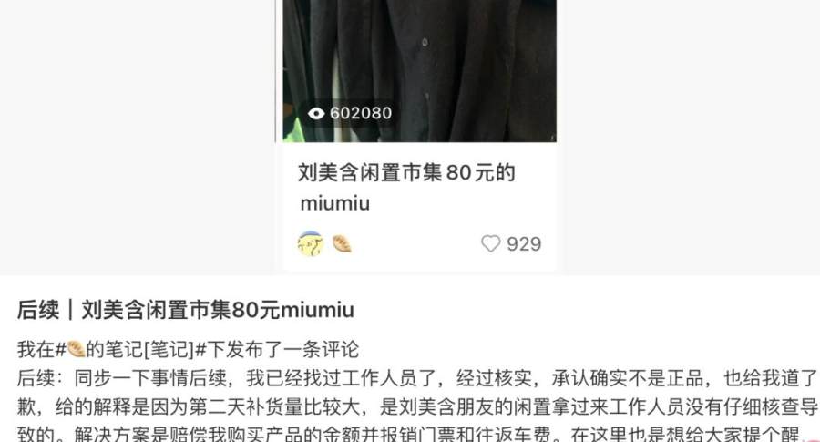 其三,也是最具公信力杀伤力的,是假货事件。在市集现场,有消费者反映购入了假冒的奢侈品牌商品,包括miumiu针织衫、LV包等,并在小红书上发帖质疑,引发社交平台迅速发酵。