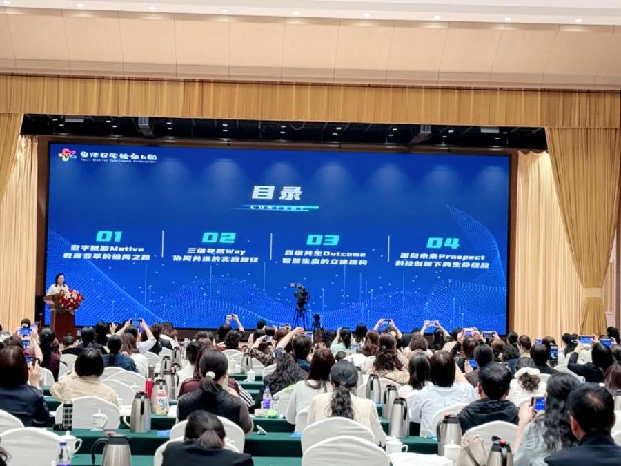 会议期间,惠济区实验幼儿园教育集团总园长冯静分享了我园在数字化实践方面的经验与成果。她以“在成长”平台为切入点,围绕“数字赋能、三维导航、四维共生、面向未来”四个板块展开汇报。