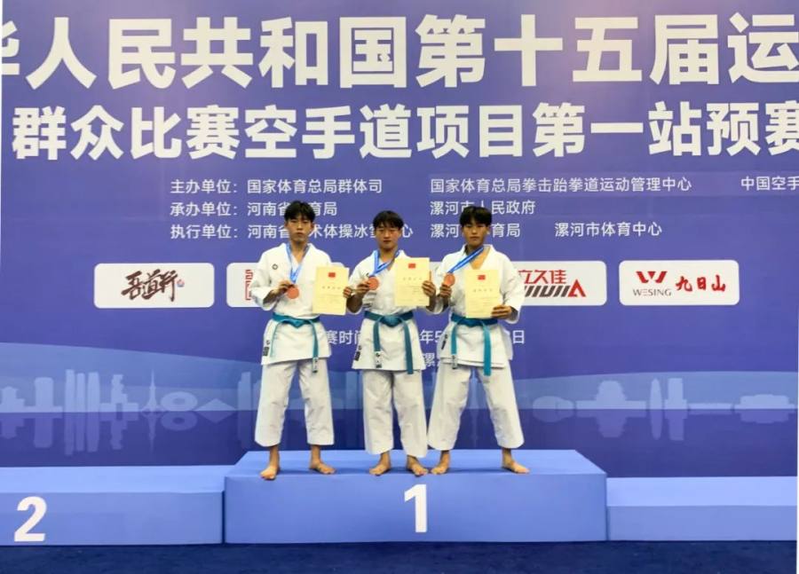 5月10日——12日,第十五届全国运动会群众比赛空手道项目第一站预赛在河南漯河圆满收官。来自全国24支代表队的259名运动员同台竞技,经过三天的白热化竞争,鹅坡武术学校空手道队的4名队员代表河南队参赛,空手道队脱颖而出,斩获群众男子团体项目第3名、女子团体项目第5名的优异成绩。