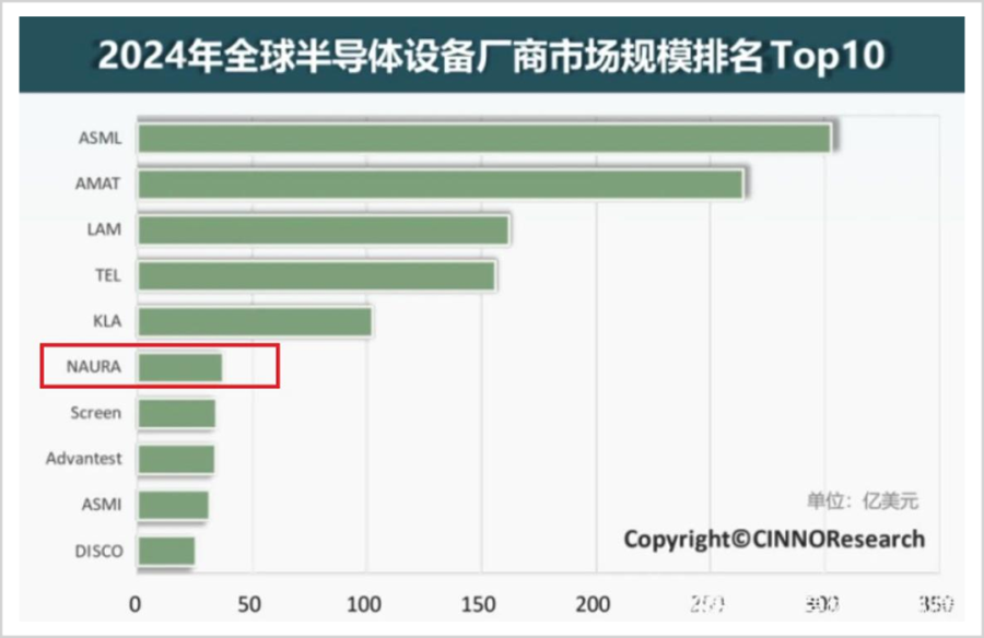 2023年,北方华创在全球集成电路装备企业排名中位列中国企业第1位,是全球半导体设备Top10中唯一的中国厂商。2024年公司再上层楼,全球排名从第八上升至第六。